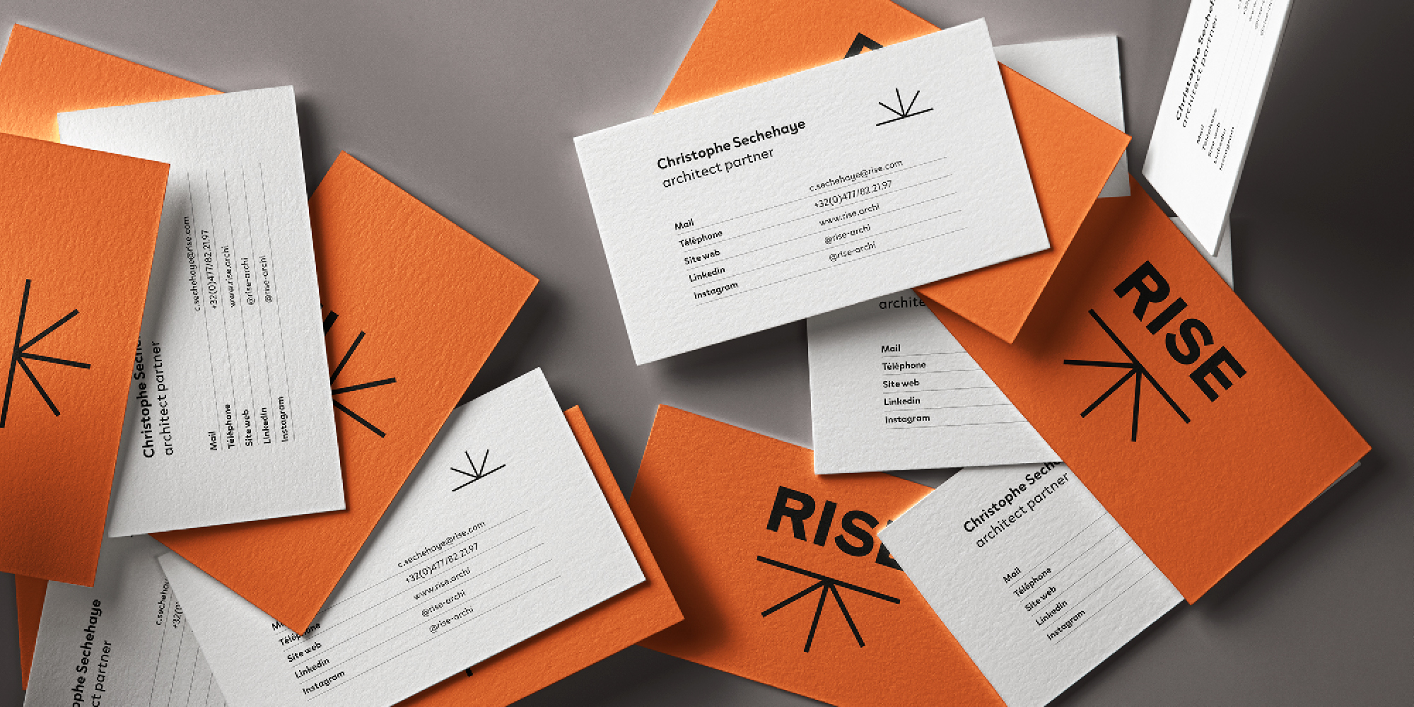 Cette identité duale a permis de définir le nom RISE, une plateforme créative ouverte et ascendante. La mission a abouti à : Une identité complète (naming, logotype, palette, typographies, charte), une narration claire pour attirer d’autres disciplines, une direction artistique pour leur présence digitale, un positionnement unique : un studio qui élève les lieux en embrassant la complexité humaine et technique, du plan urbain à l’objet, en passant par le paysage et les espaces publics.